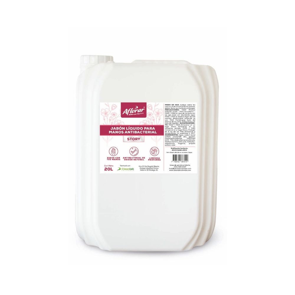 Volver a la tiendaEl Jabón Líquido para Manos Antibacterial Story Aflorar * 20 L es un jabón líquido desinfectante, biodegradable, ideal para la limpieza y suavidad en las manos, contiene agente antibacterial de origen natural. Con un buen uso previene enfermedades que se pueden transmitir mediante contacto con personas, superficies, objetos y alimentos.